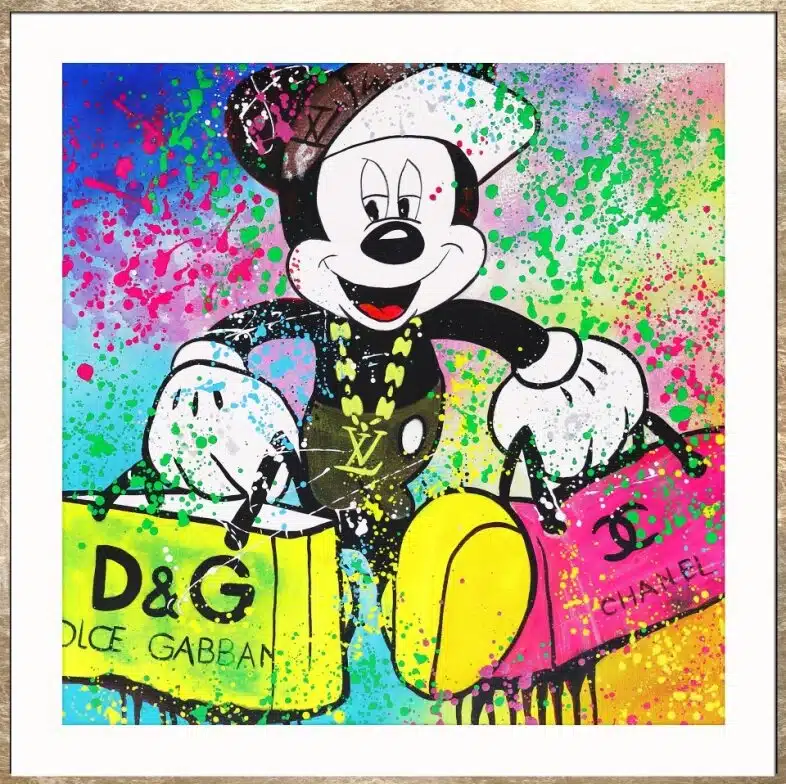 Add a touch of fun and luxury to your interiors with “Dolce & Gabbana,” an 80 × 80 cm artwork featuring Mickey Mouse holding Dolce & Gabbana and Chanel bags. This unique and vibrant design blends pop culture with high fashion, making it a perfect centerpiece for modern and eclectic spaces.