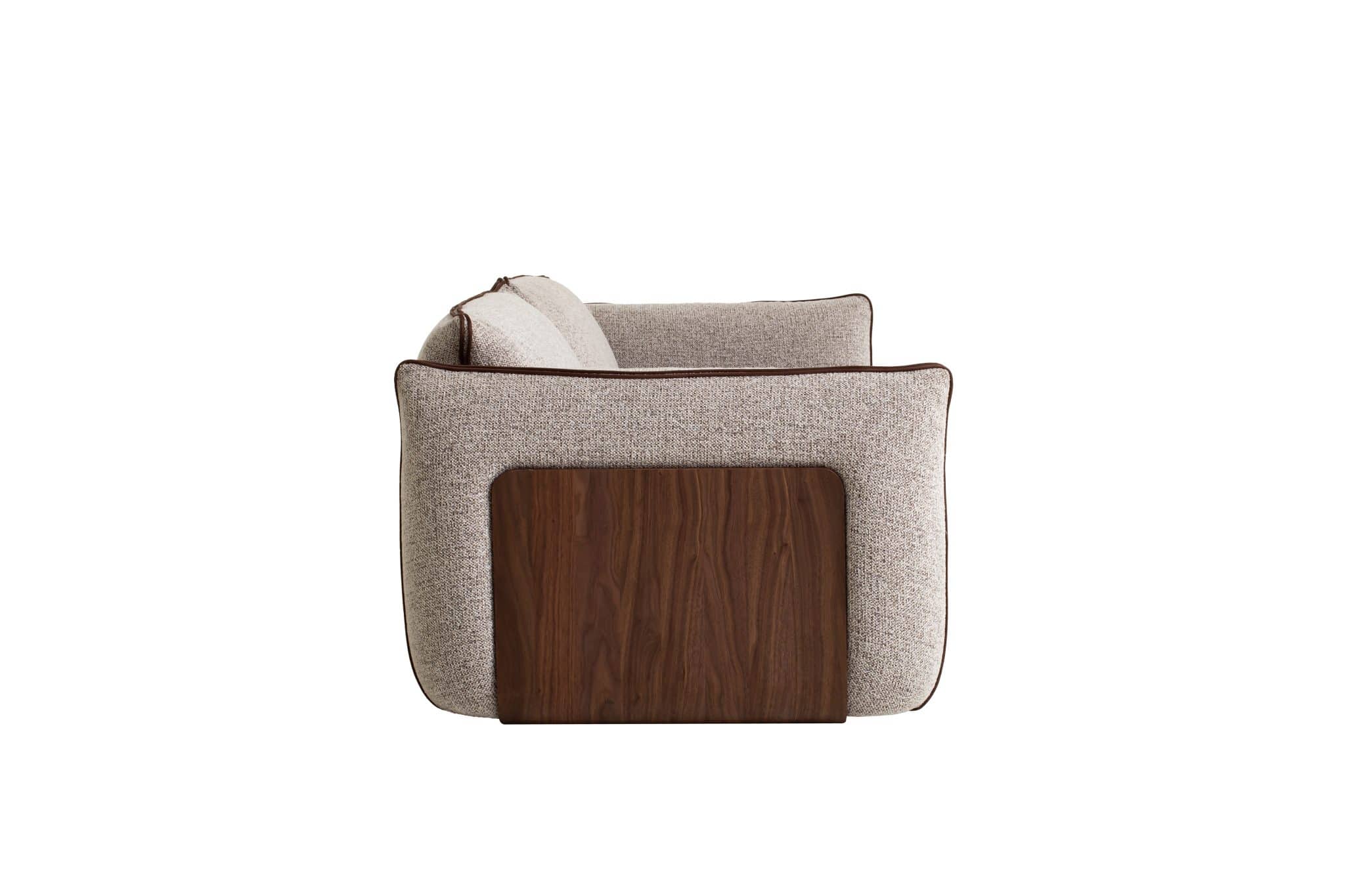 Built on a sturdy mix of solid wood and plywood, the frame is finished with decorative walnut veneer MDF sides. Plastic legs provide stable footing while keeping the look light and modern. A perfect blend of style and practicality — ideal for contemporary, minimalist, or warm earthy interiors.